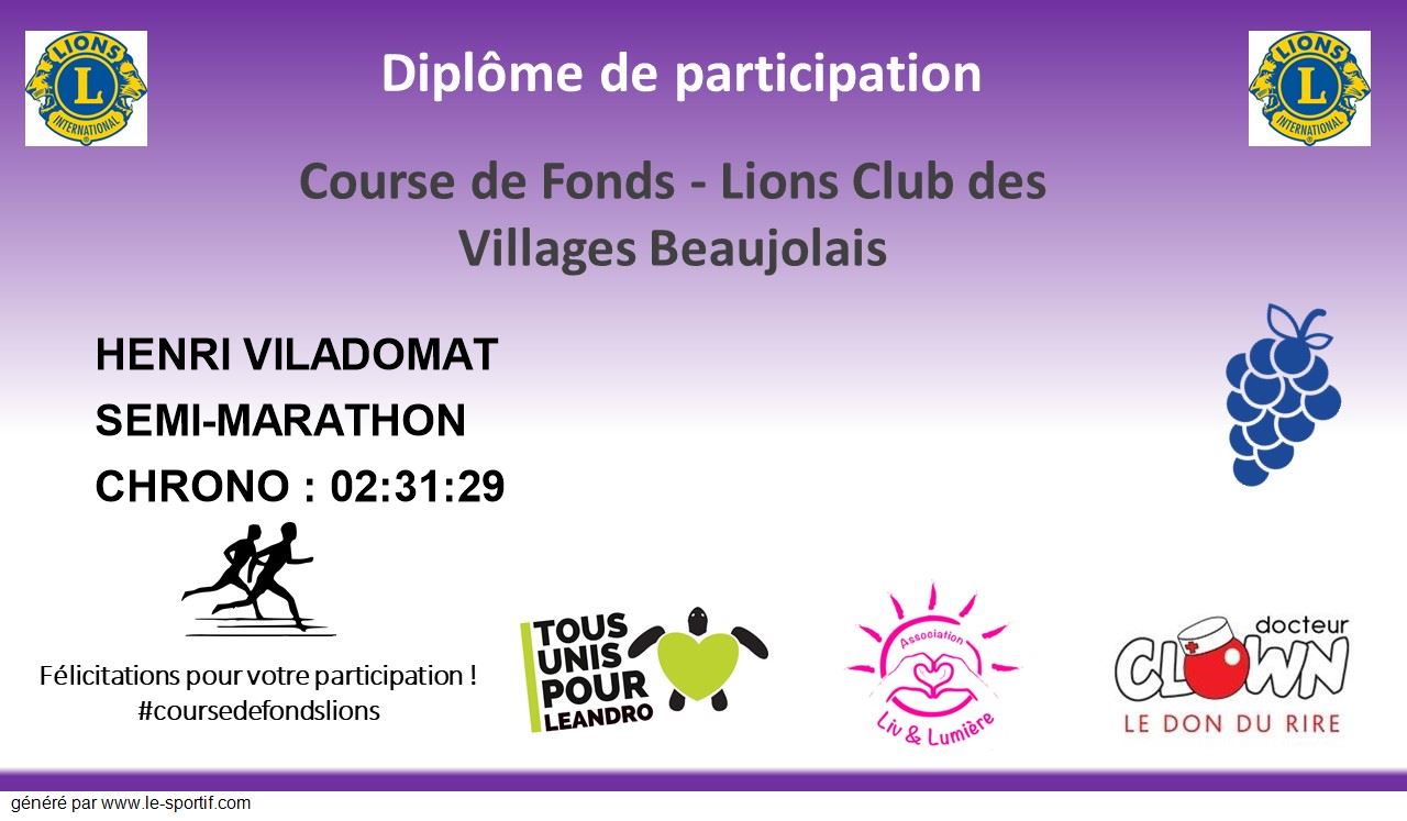 Course de Fonds Lions Club Villages Beaujolais